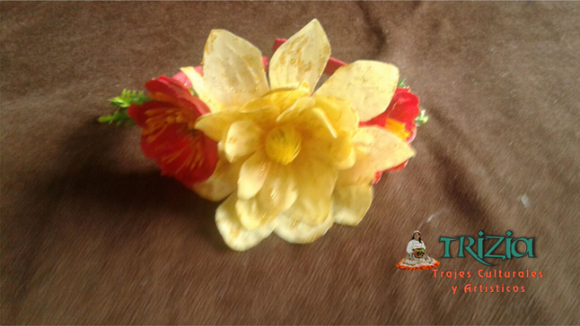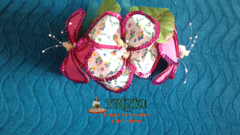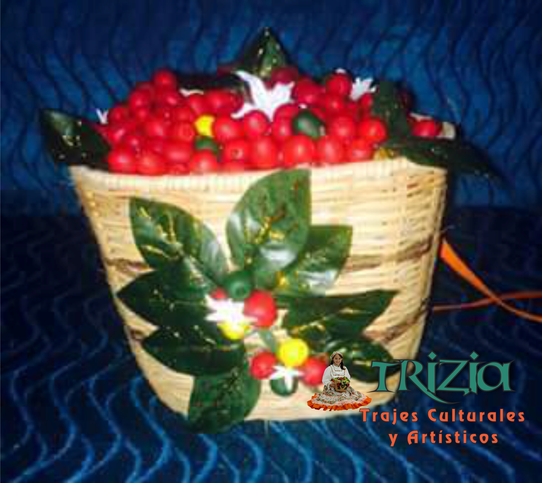 Deseando cubrir las necesidades de los clientes, fue así como fuimos complementando nuestros trajes con hermosos tocados de flores y ramas de café para el cabello, alpargatas y cotizas decoradas, canastas con café para chapoleras, bisutería ( collares y aretes) sombreros con hermosas flores y accesorios completos para el traje de campesino.